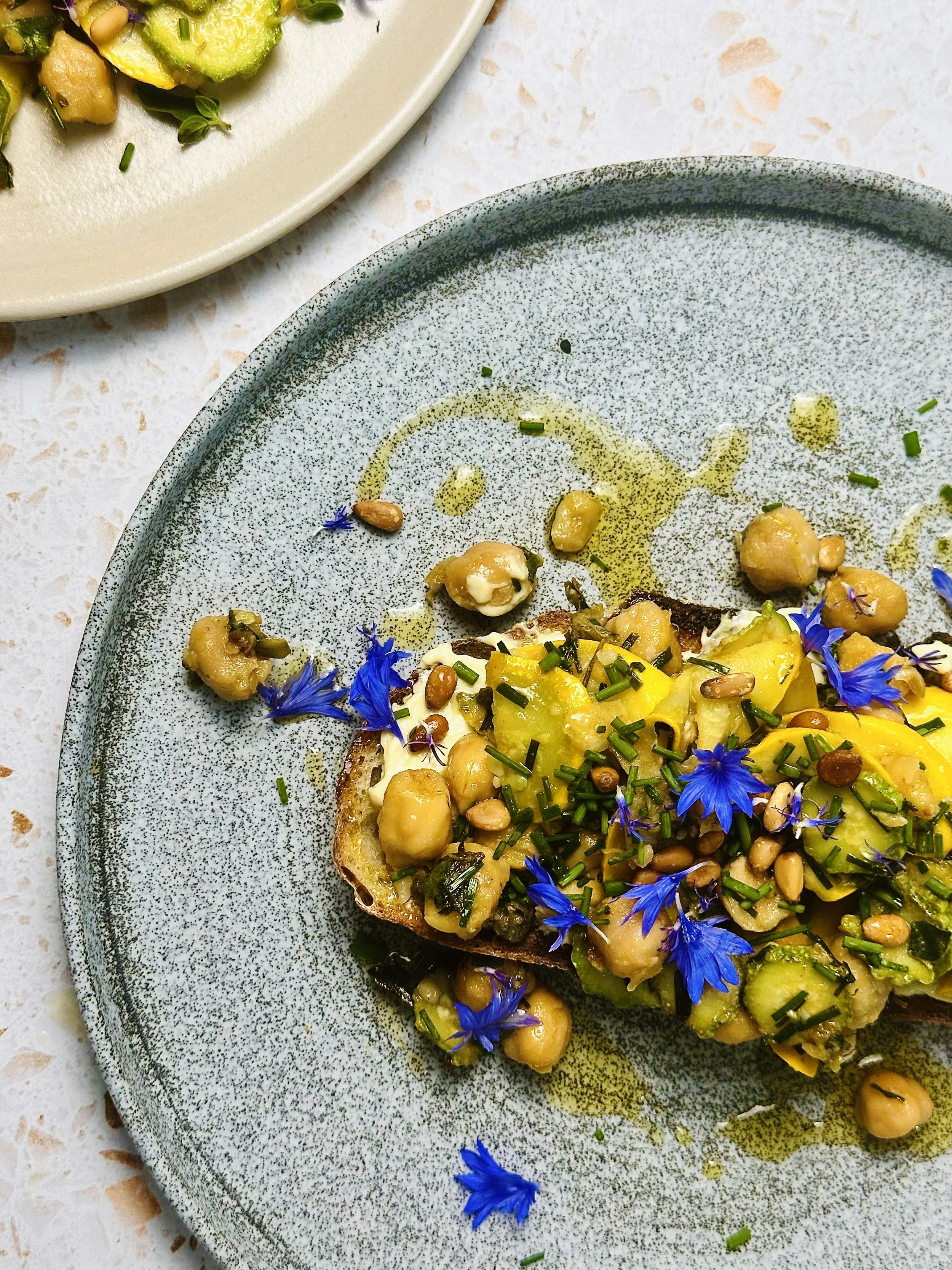 Some serving suggestions. This would make a lovely light lunch with some fresh bread to pile it up on. One of my go to’s, this almond tarator goes so well with this dish, I highly recommend. Dollop straight on or spread on toast and top with the courgette and chickpeas. Another option would be to add orzo and boiling water to the pan, stirring regularly to stop sticking - making a one pan pasta dish. You will need to adjust seasoning and I don’t have exact measurements for this, but if you’re a confident cook, go for it!