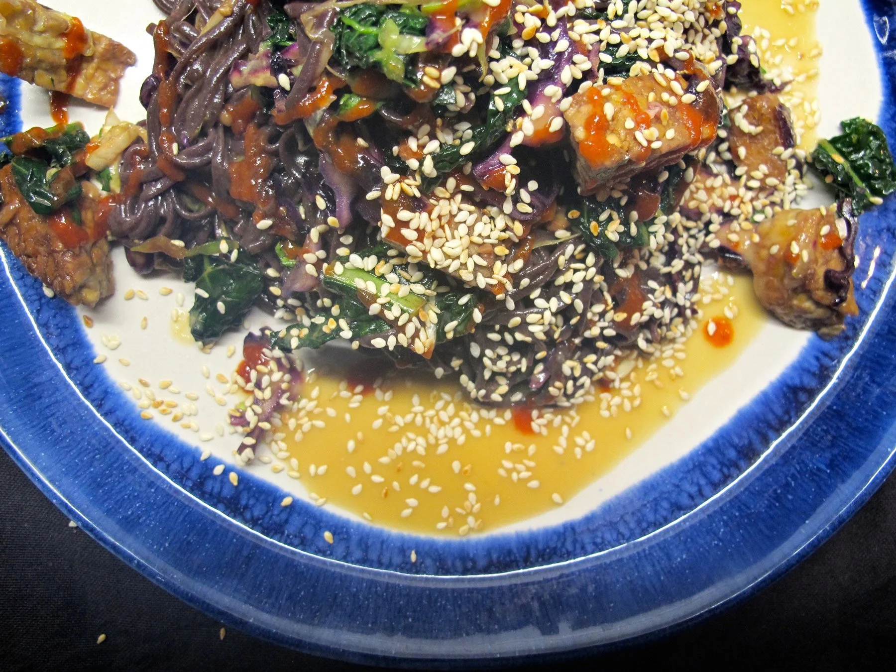 Black rice noodles, tempeh, miso dressing